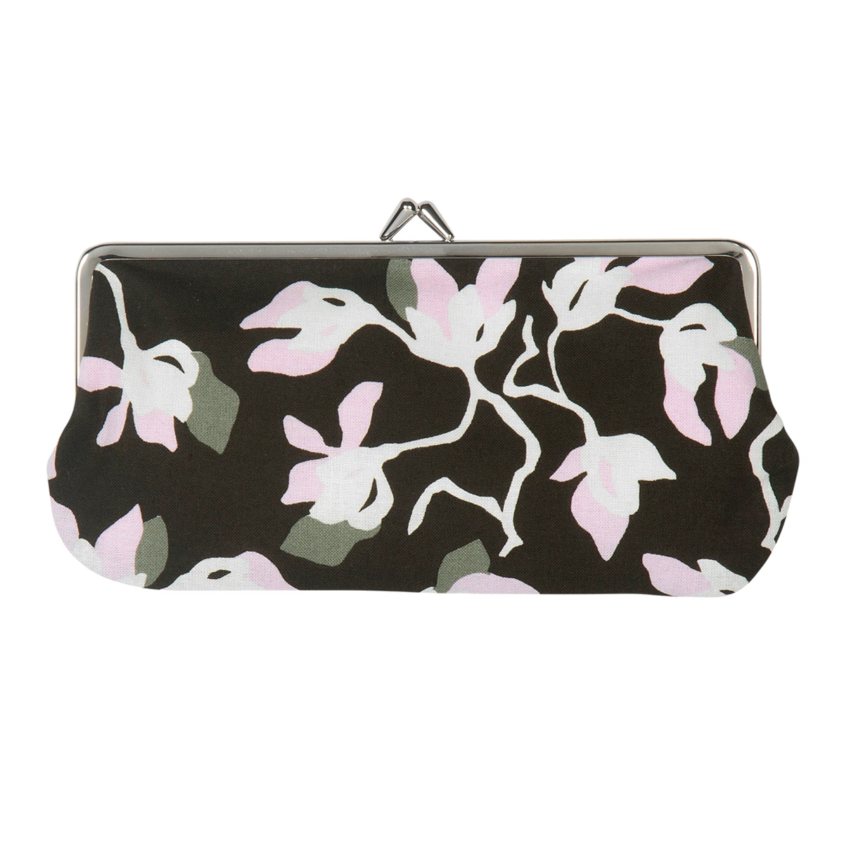 More about Marimekko Katleija Lilac / Green Eyeglass CaseStore not only specs in this 100% cotton case, but pocket-sized possessions such as loose change, cosmetics, or a cellphone. The silver-toned clasp snaps shut to ensure belongings sit securely. The Marimekko eyeglass case features flowers designed by Paavo Halonen in spring shades of lilac, green, and white. The background color is a dark charcoal with hints of green; it’s symbolic of the life sprouting from the bout of darkness during winter’s visit.