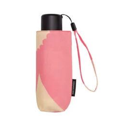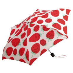This umbrella comes with matching nylon sleeve and features a deep red wooden handle. An easily accessible value opens and closes the umbrella.