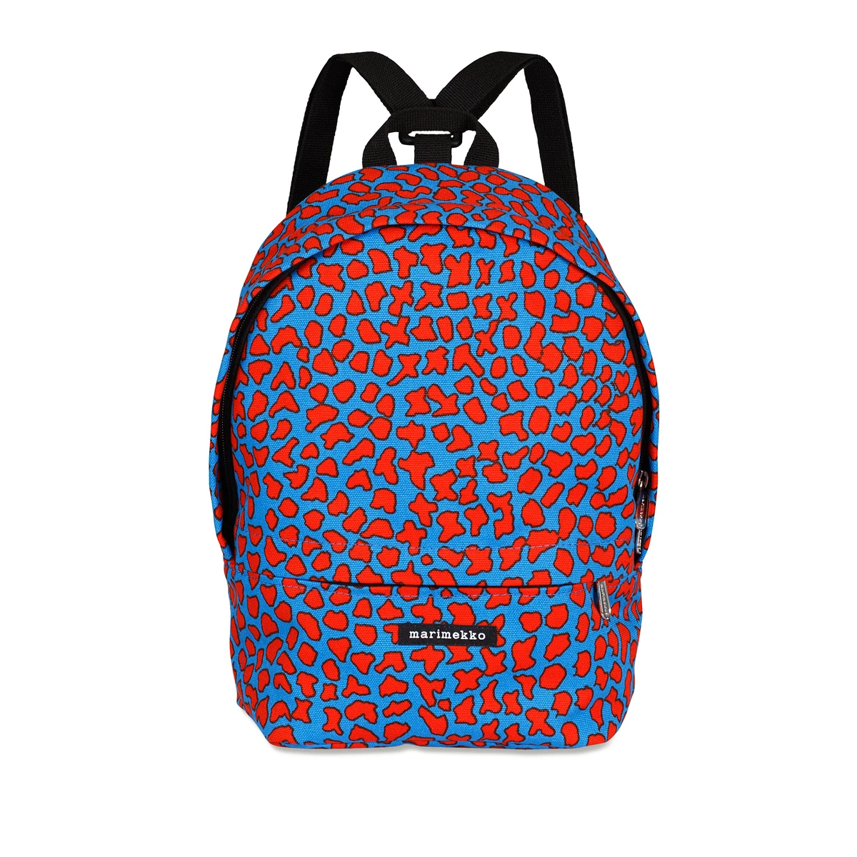More about Marimekko Mini Eira Pitka Ikava BackpackWhether you use this backpack as a purse or a small travel bag, you will look chic and unique with this contrasting blue, red and black backpack. The Pitka Ikava pattern is designed by Paavo Halonen and printed in Helsinki. The mini Marimekko backpack includes one larger compartment with a pocket inside for small electronics/valuables as well as a front zipper pocket for smaller items. With adjustable straps, this versatile bag will add funk and spunk to any night out or daytime trip.
