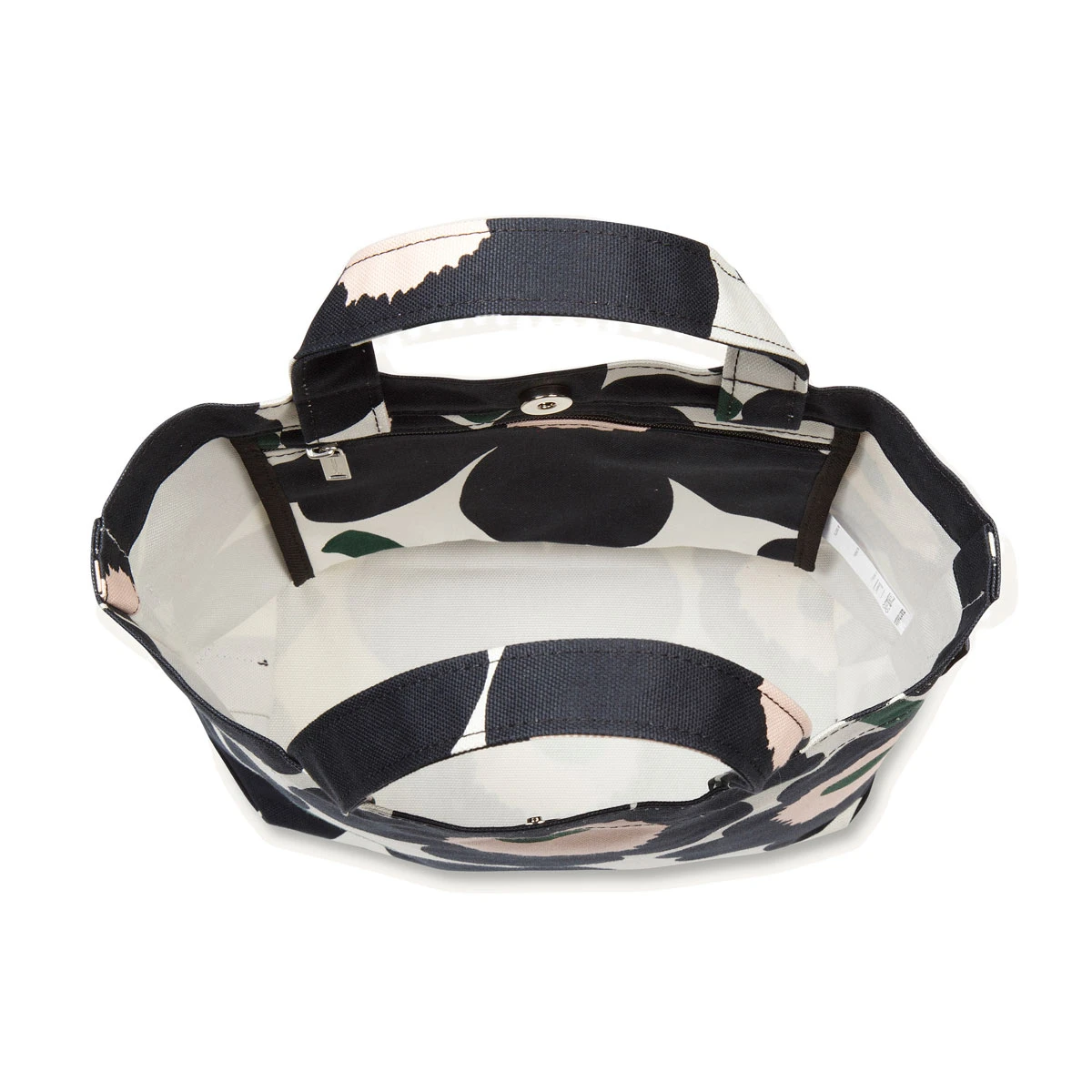 More about Marimekko Pieni Unikko Black / Pink / Green Veronika BagThe Marimekko Unikko (Poppy) pattern is a well-recognized print that will turn heads when your friends see you with this bag. The black, pink, green, and cream color scheme allows the funky pattern to match almost any outfit of the day. The metal snap closure opens to reveal a roomy inside with a deep zipper pocket hanging along one side. Zip up your phone, keys and wallet to keep them safe and fill the spacious bag with anything else you need for your daily adventure.
