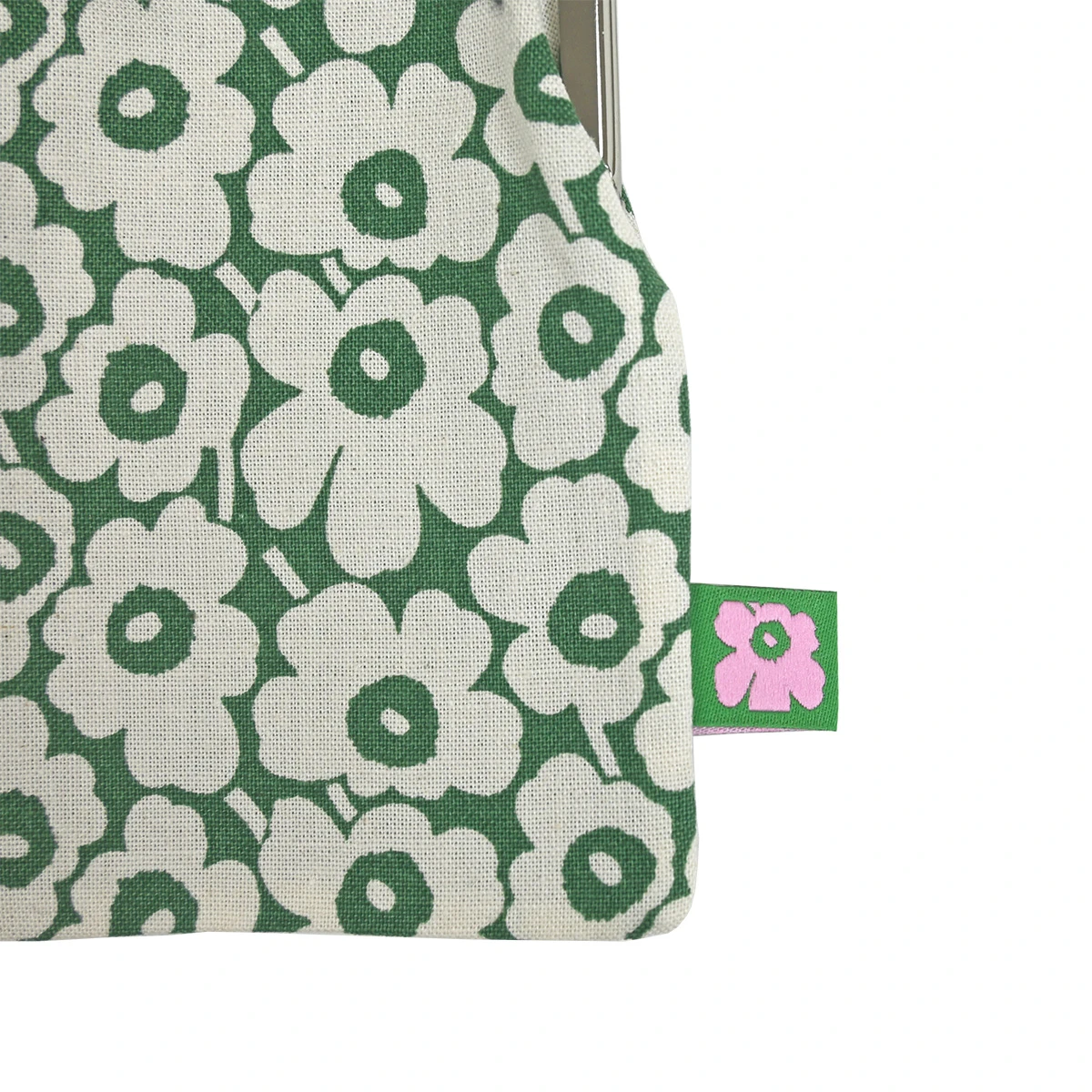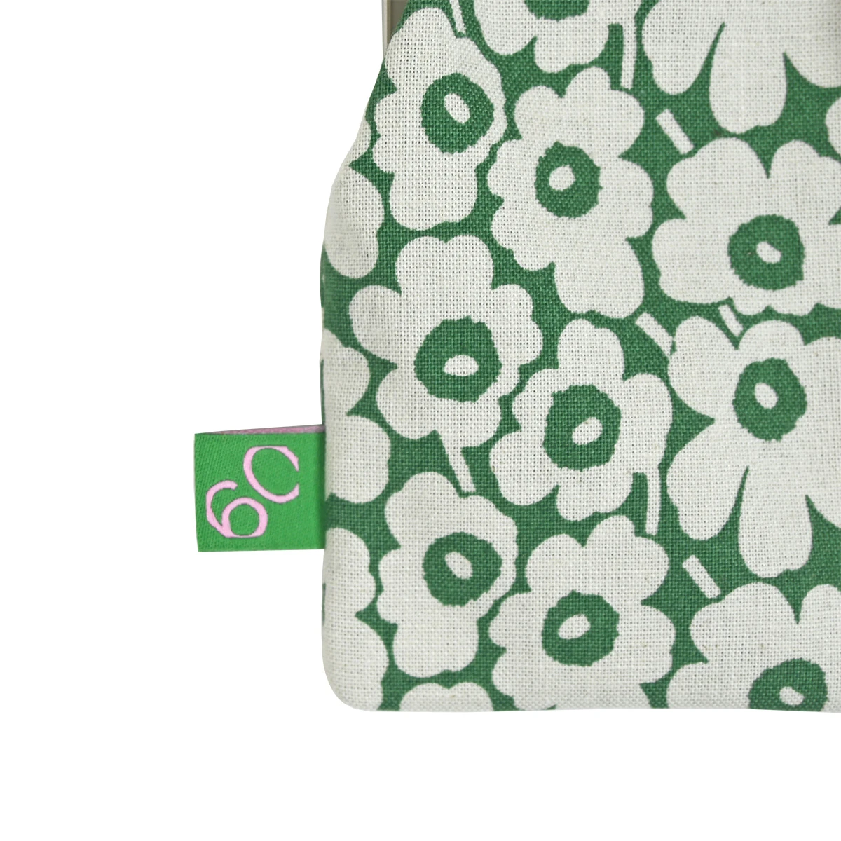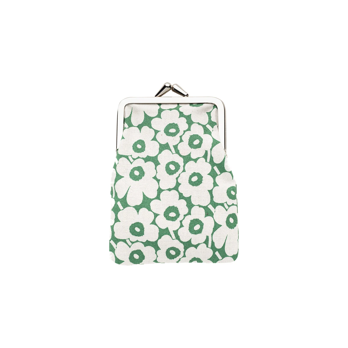 The year 2024 marks the 60th anniversary of Unikko (Poppy), one of the most recognized Marimekko print designs in the world. To celebrate, Maija Isola’s signature poppies are scaled down in size and lovingly named “Pikkuinen (The Little One) atop this fun-sized Marimekko coin purse. The celebratory poppies are seen in an eye-catching green and white colorway, while the interior features a solid green. Included is a metallic clasp, making it easy to snap open and close shut when on-the-go and trying to stay organized. The Marimekko Pikkuienen Unikko small coin purse has an attached loop with a single poppy on one side and an identifying “60” on the opposite side to commemorate this special milestone.