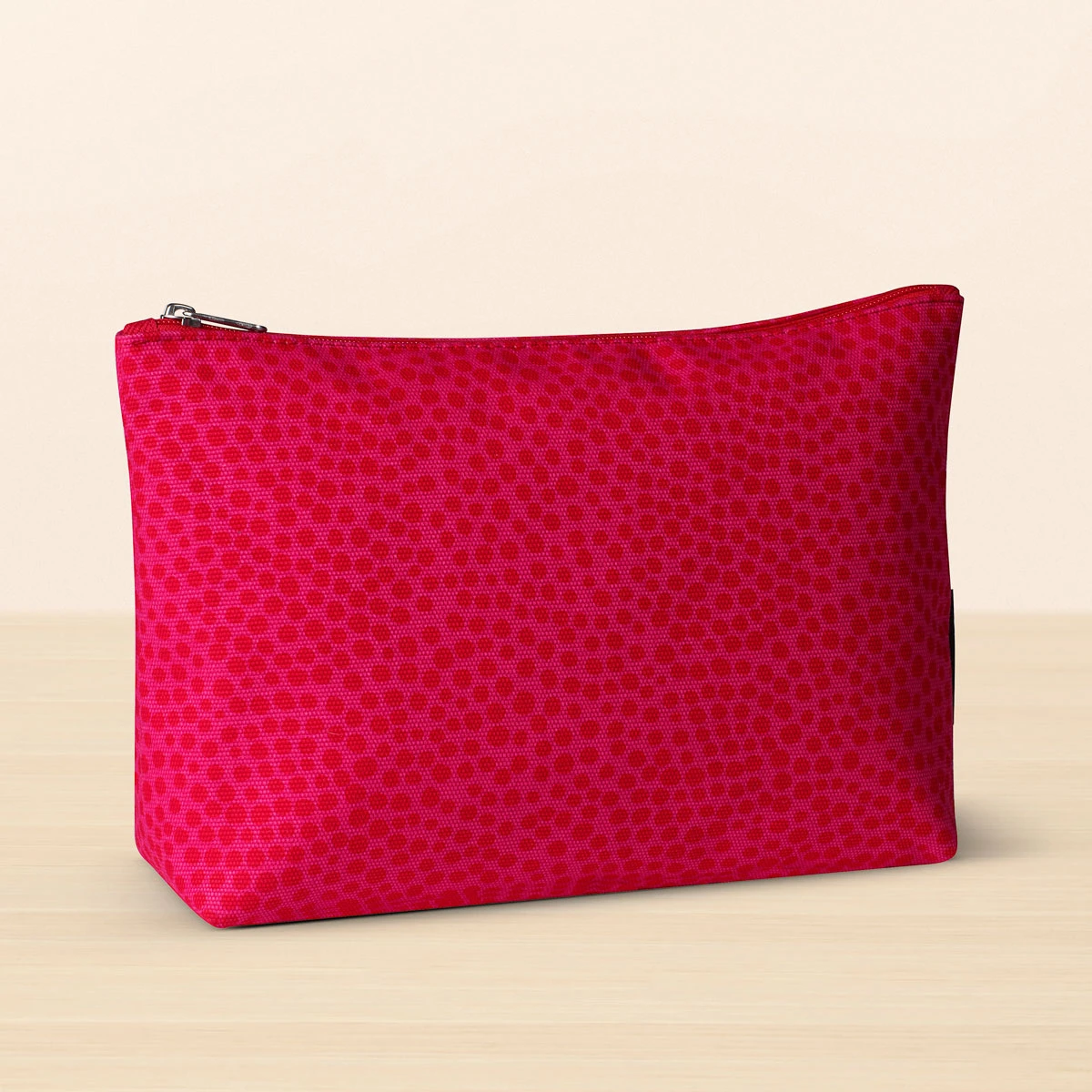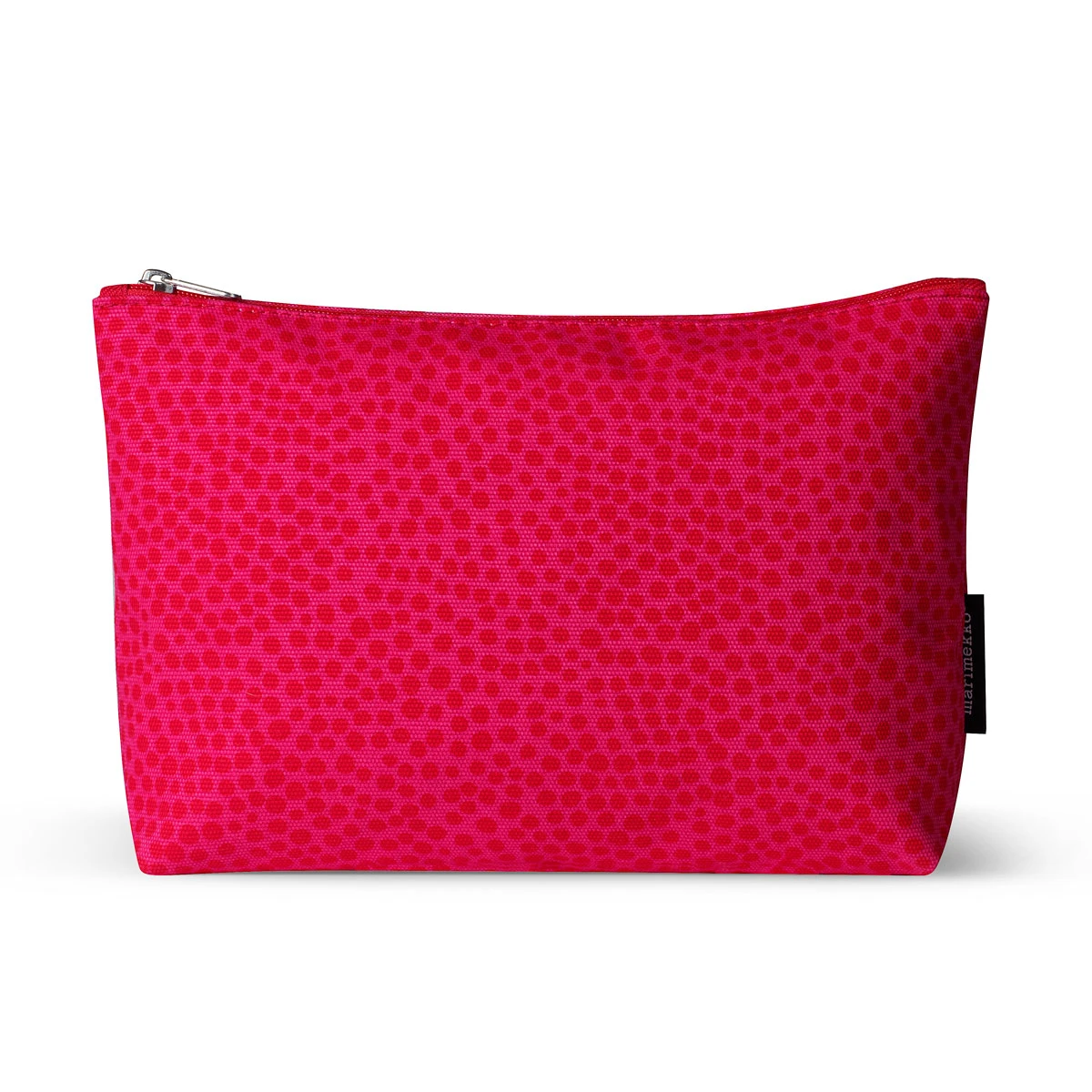 More about Marimekko Pirput Parput Ruut BagThe all-in-one versatility of the Marimekko Pirput Parput Ruut Bag makes packing or storing toiletries a lovely task. Made of sturdy cotton canvas with a PVC-coated cotton interior, the bag is easy to keep clean. The oversized pouch is roomy enough for cosmetics, toiletries, and perhaps even a hair tool. A zipper along the top keeps contents secure. Leave it on the countertop to showcase the fun spots of the Pirput Parput print in rich red and pink.