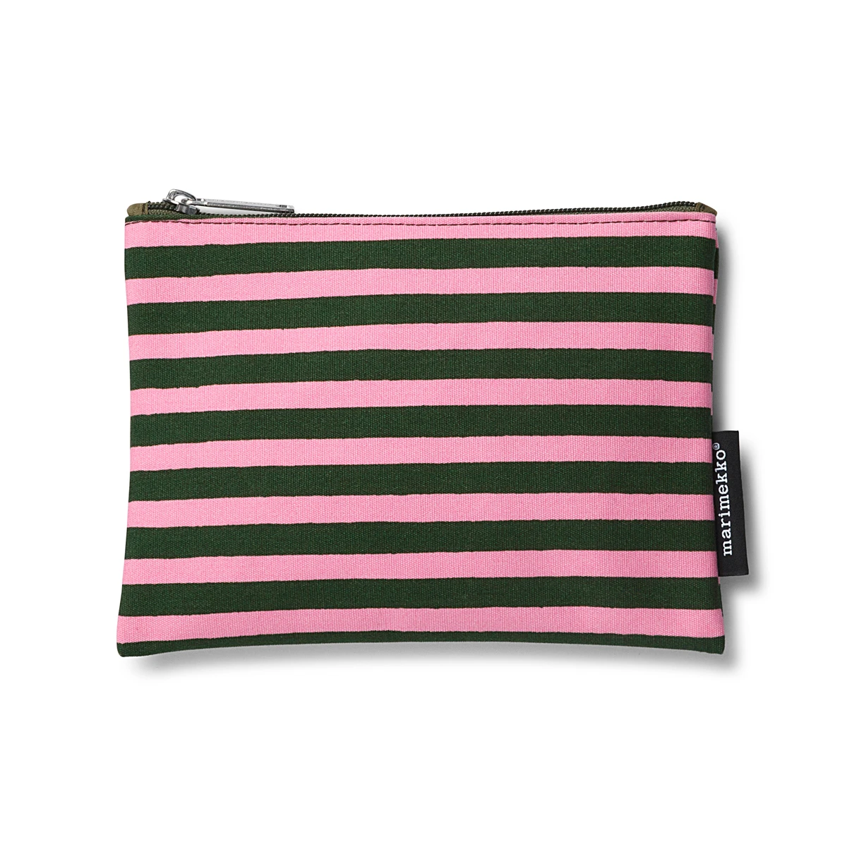 More about Marimekko Ujo Pink / Green Zip PouchGet all your little treasures organized with your new prized possession using the Marimekko Keksi Zip Pouch. Maija Isola’s classic striped Ujo pattern pairs pink and green, giving this zippered pouch a zippy look. This 100% cotton canvas pouch is lined with PVC-coated cotton so that any smudges wipe away easily. Whether you use it for pencils, makeup, gadgets or just odds and ends, the pouch will surprise you with its fashionable functionality each day.
