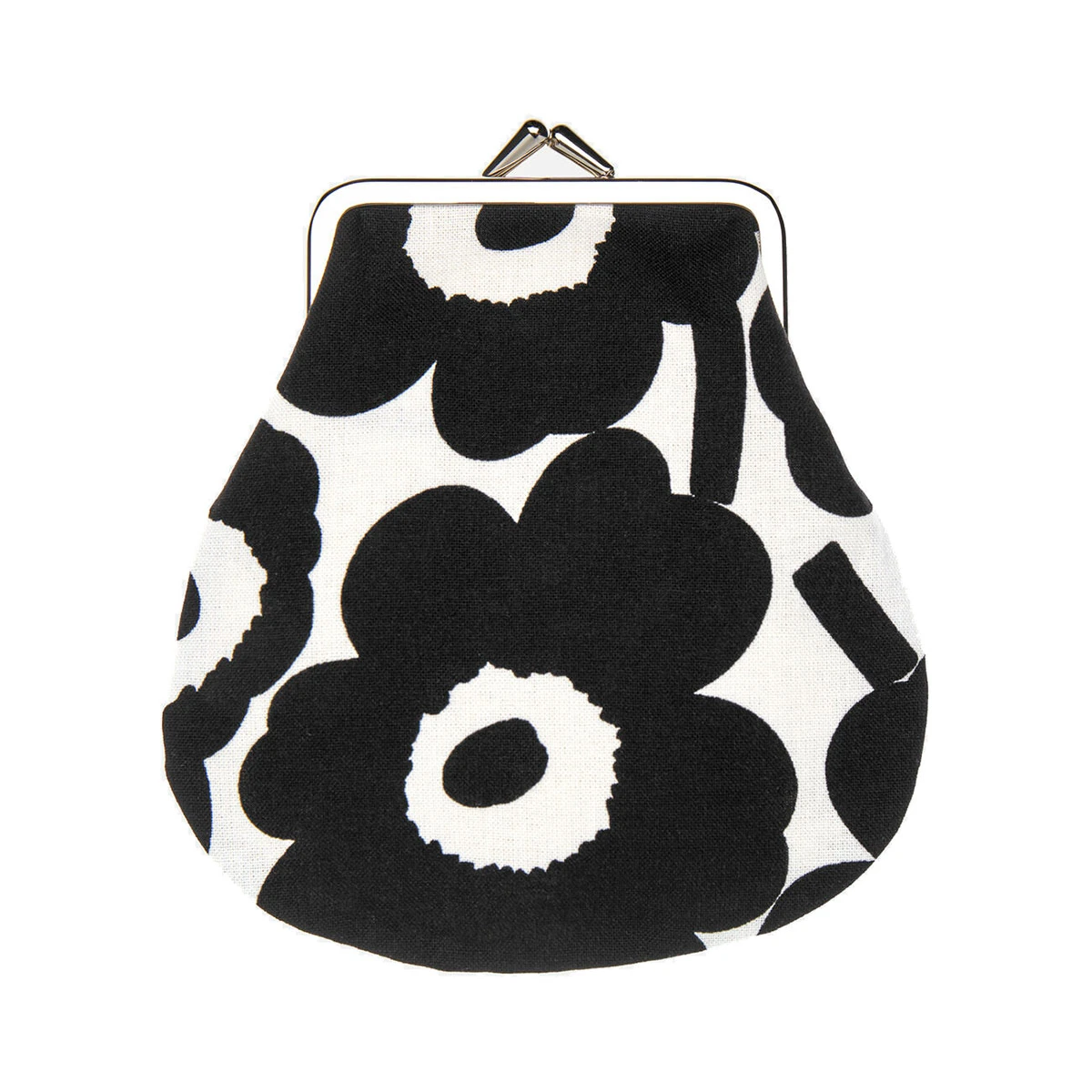 More about Marimekko Unikko Black / White Coin PurseMarimekko’s most famous pattern, in a classic black and white colorway, is perfect for a daily pick-me-up. The Marimekko Unikko poppies by Maija Isola are crisp and clean in a simple black and white. This retro-style coin purse has a metal clasp and is made from 100% cotton to hold coins, cards, cash, or small cosmetics.