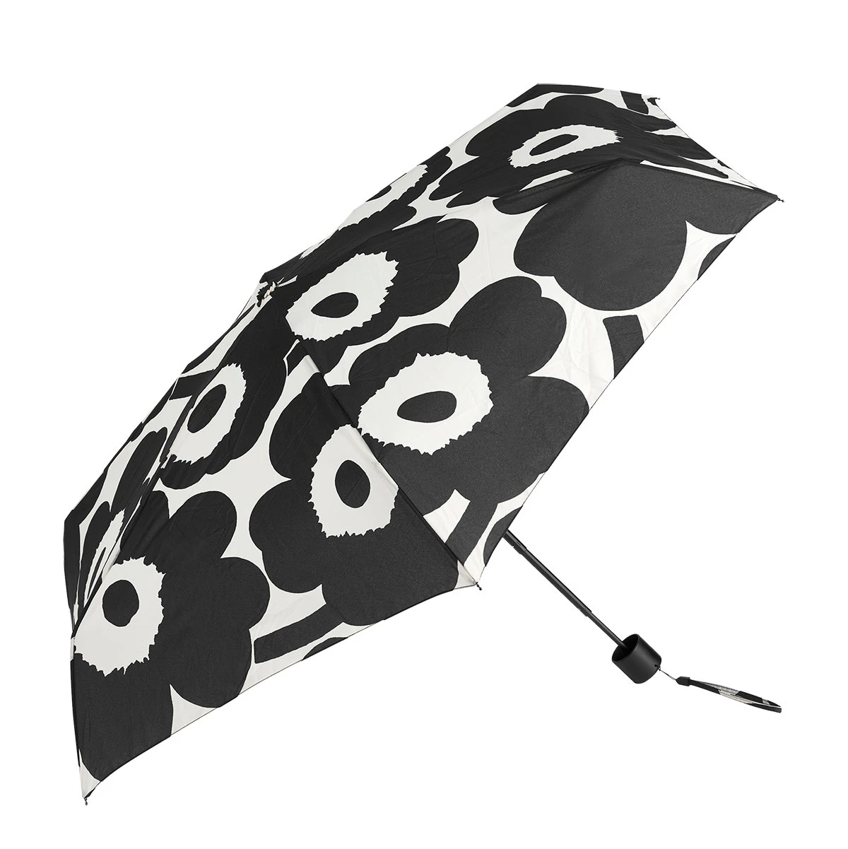 More about Marimekko Unikko Black / White Mini Manual UmbrellaGreat things come in small packages. At about half a foot unopened, this small Marimekko Unikko umbrella is easily kept in a purse, briefcase, backpack, or glove compartment so you’re never caught uncovered in unexpected rain. Manually opening and closing, the canopy of this Marimekko umbrella stretches more than three feet in diameter. Featuring Maija Isola’s iconic Unikko (poppy) print in a classic black and white colorway, skies seem to fade away when you’re under this blooming beauty.