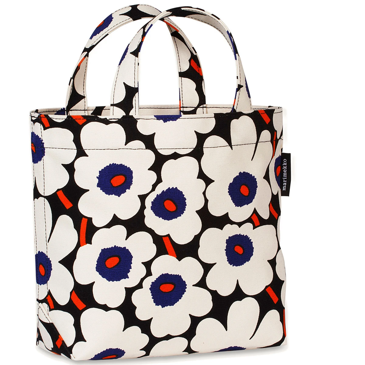 More about Marimekko Unikko Blue / Orange Veronika BagSpread some cheer as you go about your day with the bright and iconic Marimekko Veronika Bag. Maija Isola’s powerful poppy adorns a durable cotton canvas handbag, with sturdy straps to swing in hand or hang in the crook of your arm. The metal snap closure opens to reveal a roomy inside with a deep zipper pocket hanging along one side. Zip up your phone, keys and wallet to keep them safe and fill the spacious bag with anything else you need for your daily adventure.