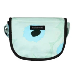 More about Marimekko Unikko Mint / Blue Kerttu BagThis durable shoulder bag features flowers designed by Maija Isola in 1964. Called Unikko (Poppy), it’s become the most well-known prints in Finnish history. Here in hues of mint green. blue, and black, it feels new and fresh. Two roomy interior pockets, one with a zipper closure, are perfect for your wallet, keys, phone and more. A cover flap secures the purse with a magnetic snap and features an outside zipper pocket, perfect for things you want within easiest reach.