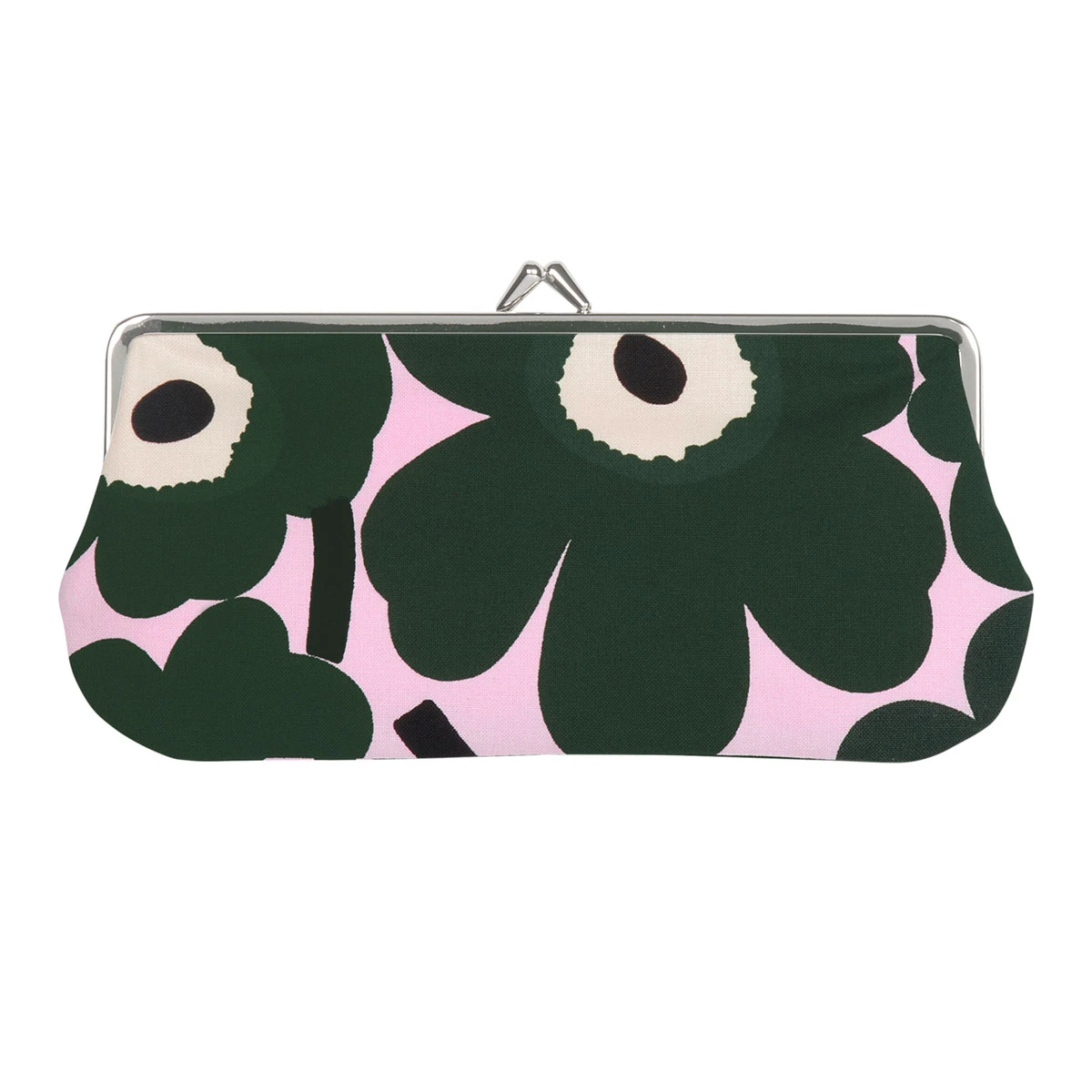 More about Marimekko Unikko Pink / Green Eyeglass CaseStore not only specs in this 100% cotton case, but pocket-sized possessions such as loose change, a cellphone or pencils as well. The silver-toned clasp opens to reveal a pink lining and snaps shut to ensure belongings sit securely. Adorned with Maija Isola’s iconic poppies in pink, green, black, and beige, it’s a great pick-me-up when you pick it out of your purse throughout the day.
